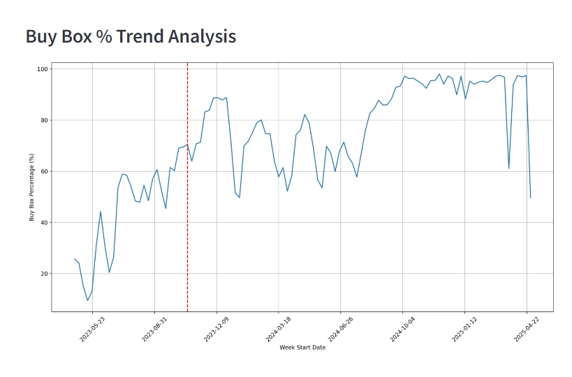 Following the red line—marking the beginning of Brand Alignment’s enforcement—Buy Box control skyrocketed and stabilized above 90%.